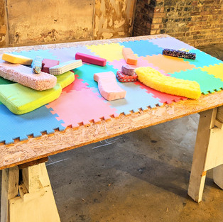 Secondly, the size of the space wasn't accounted for when deciding on the number of works we had. Although we did choose all the works that we felt fitted to the theme of play, the space was very big and some pieces felt lost. However, we did try to over come this in the way we displayed the work. For example, when placed on the floor my work felt very small and disappeared into the space so we put together a table for it to sit on which lifted it into the space and made it more apparent. This is meant the viewers didn't have to kneel down to interact with the piece.